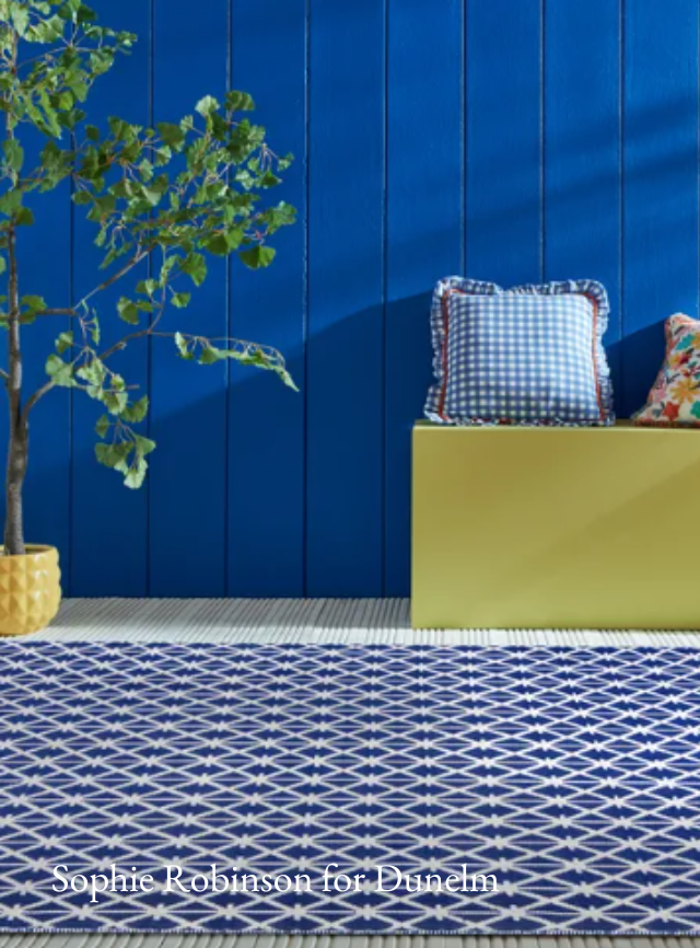You can mix florals with stripes, geometrics with ditsy prints, large-scale with small. Outdoor rugs often come in bold patterns that make the perfect base, and there’s a huge range of outdoor cushions to explore.