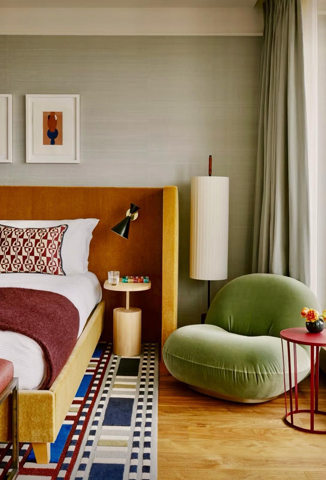 If you’re feeling a little braver, you can even flip the scale — for example, using a large-scale patterned wall with a small-scale patterned sofa.