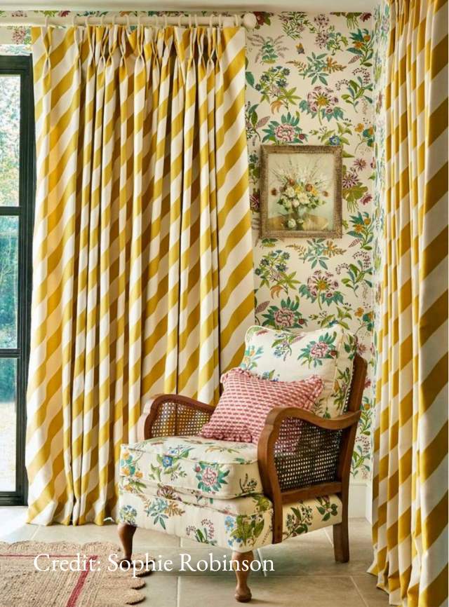 Whether it’s ditsy florals, fine stripes, or neat geometrics, small prints can layer beautifully into your home without feeling fussy.